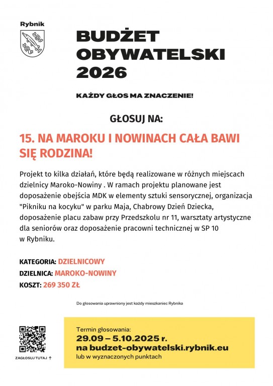 W naszej dzielnicy do głosowania dopuszczony został projekt - nr 15 -