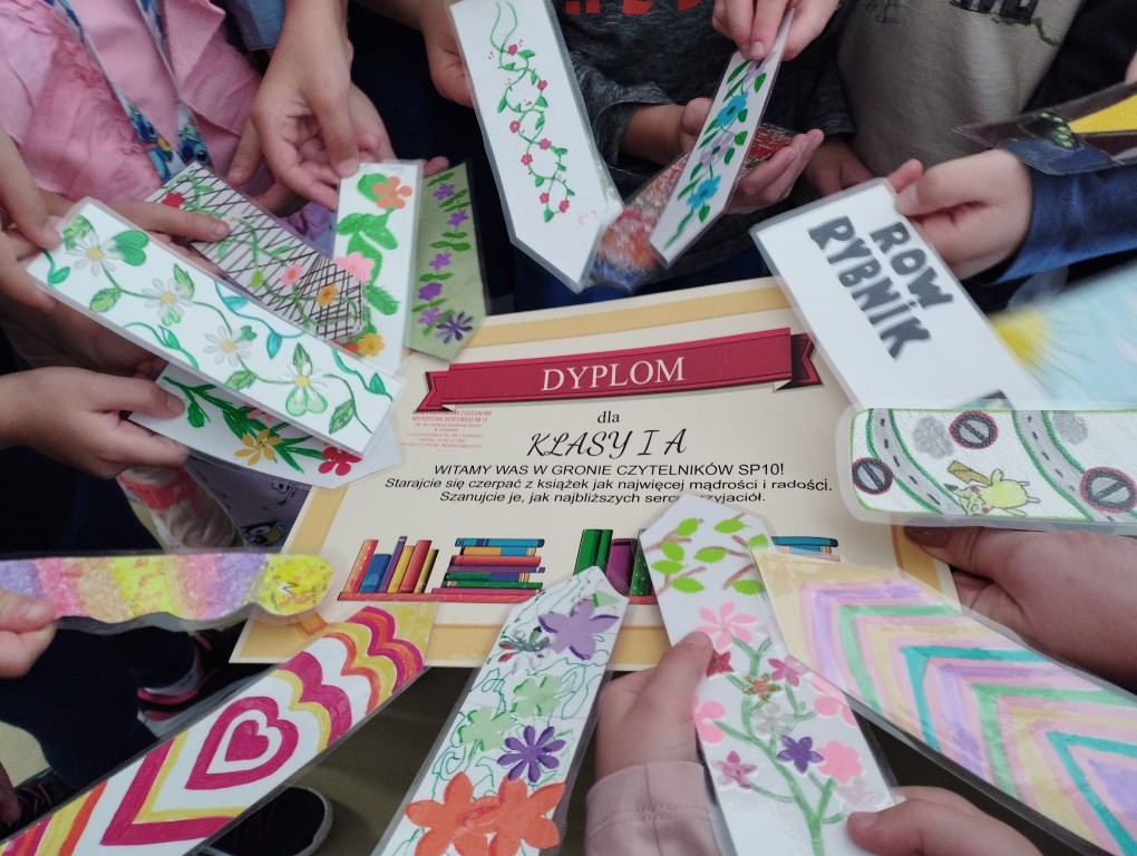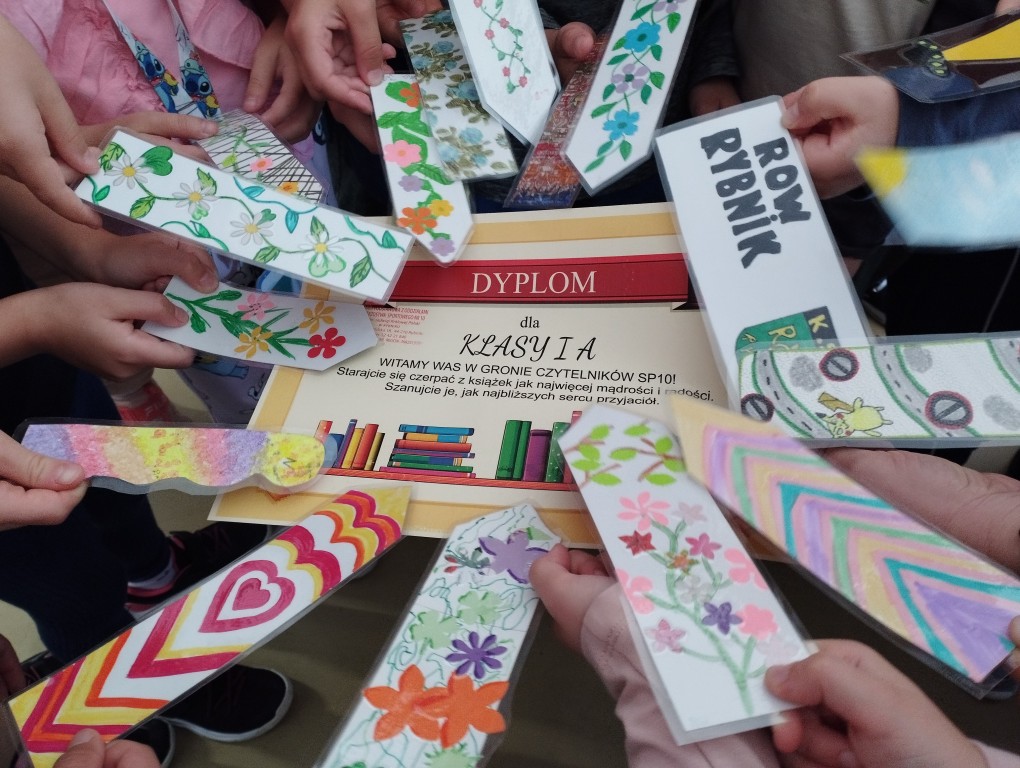 3 października uczniowie klasy 1a i b zwiedzali czytelnię i bibliotekę szkolną. W czasie wizyty dzieci poznały regulamin biblioteki, zasady właściwego obchodzenia się z książkami, a także dowiedziały się jakie są różnice między księgarnią, biblioteką i czytelnią. Uczniowie złożyli ślubowanie i zostali pasowani na czytelników biblioteki szkolnej, a następnie otrzymali upominki - zakładki wykonane przez uczniów starszych klas w ramach