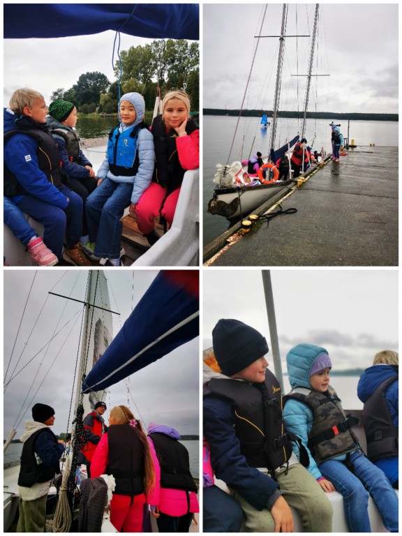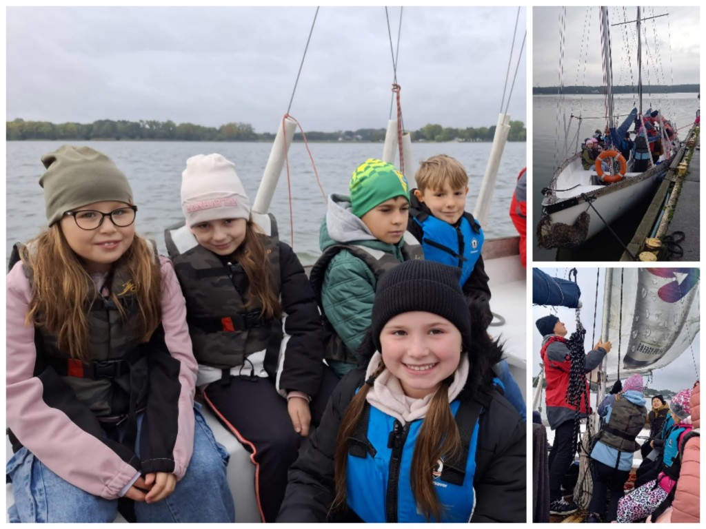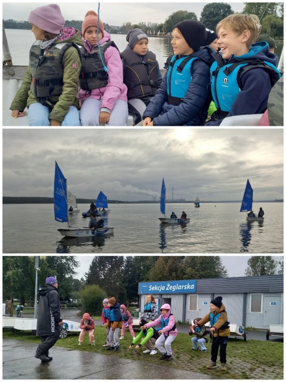 Trzecioklasiści mieli okazję zobaczyć, jak wyglądają codzienne zajęcia młodych żeglarzy. Przypomnieli sobie zasady udzielania pierwszej pomocy, a także wzięli udział w emocjonującej grze terenowej, w której największą frajdę sprawiło korzystanie z krótkofalówek. Ponadto poznali również sposoby wiązania węzłów żeglarskich, a także spróbowali swoich sił w rozciąganiu żagli i sterowaniu łódką.We współpracy z uczniami klasy 6. o profilu żeglarskim wyruszyli na wodę na łódkach typu Optimist, doskonaląc umiejętność współpracy i odkrywając uroki żeglowania.To był dzień pełen emocji, nauki i żeglarskiego ducha, który pokazał, że żeglarstwo to nie tylko sport, ale też wspaniała przygoda i okazja do nauki współdziałania.