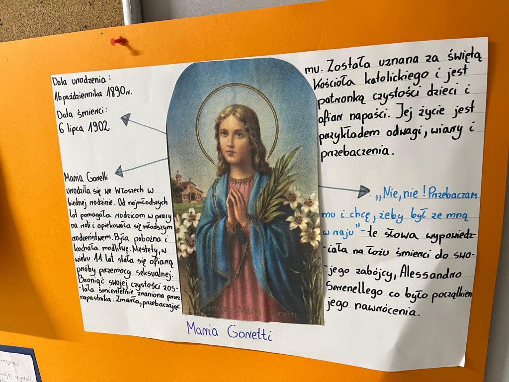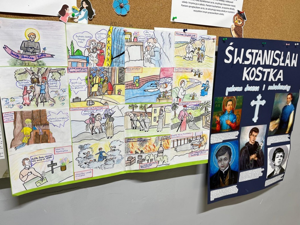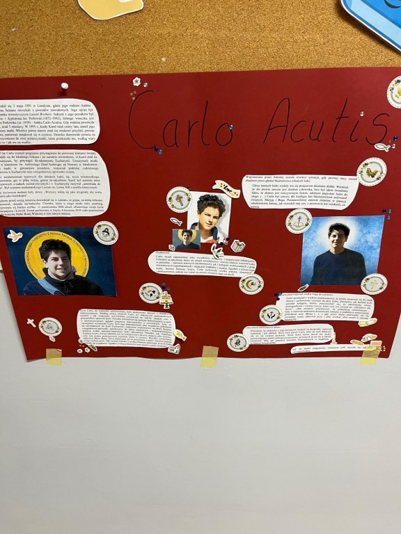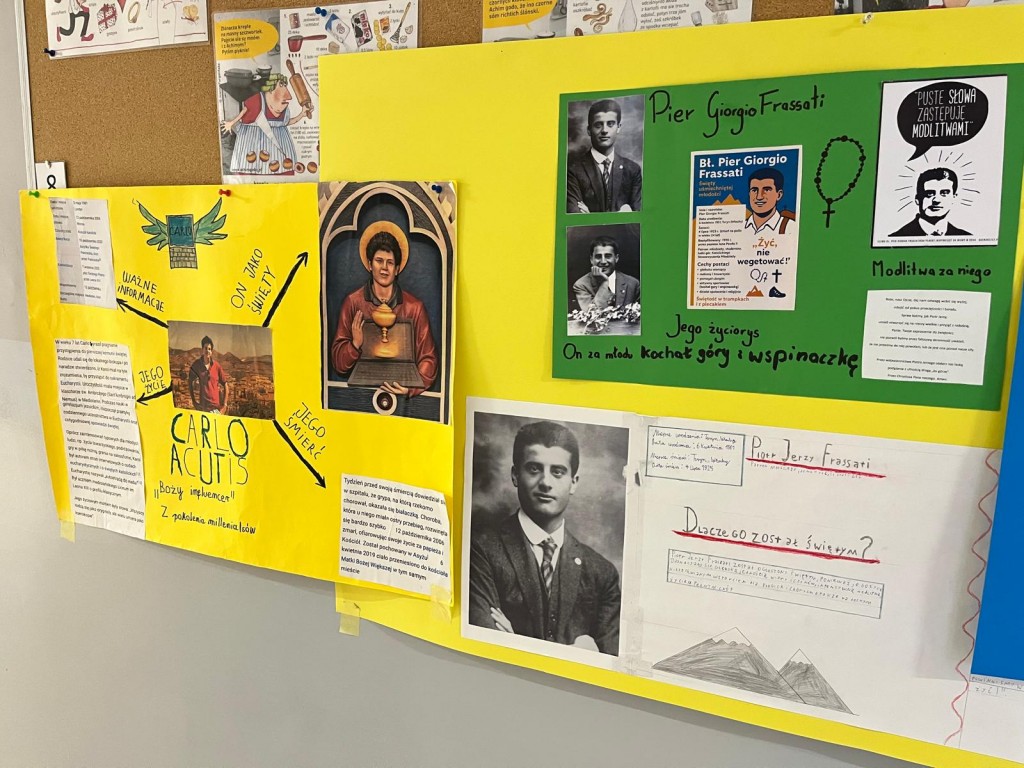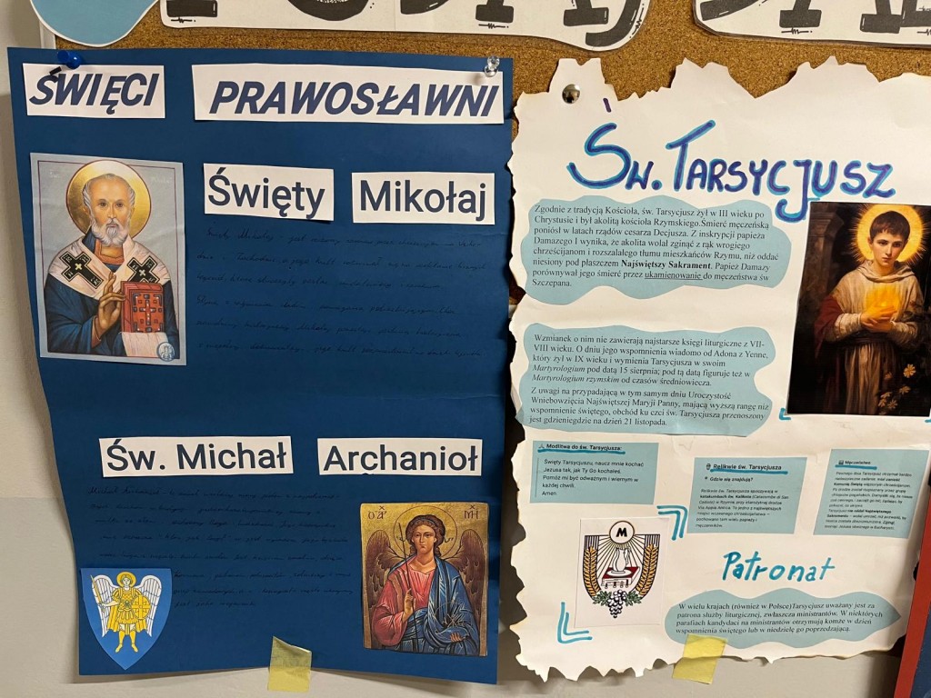 Uczniowie klas 7. przygotowali plakaty o świętych, czyli o szczęśliwych naszych przyjaciołach.