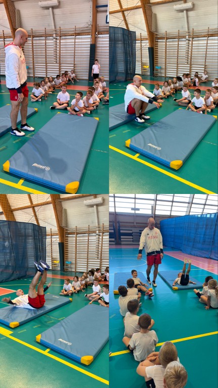 Uczniowie z ogromnym zainteresowaniem słuchali o jego sportowej drodze, treningach i wartościach, jakie niesie ze sobą judo – szacunek, wytrwałość i samodyscyplina.