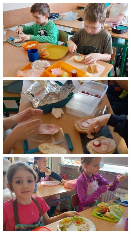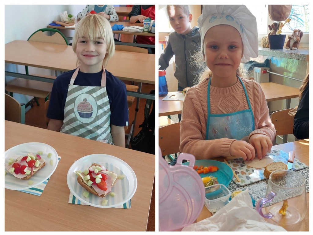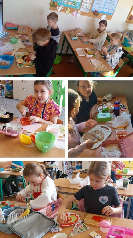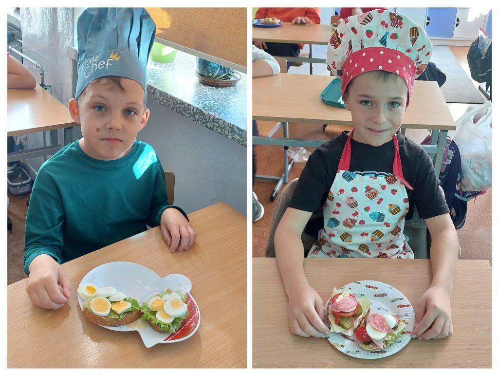 Dzieci dowiedziały się, jak ważne jest zdrowe odżywianie, a następnie wcieliły się w rolę małych kucharzy. Z wielkim zaangażowaniem przygotowywały piękne, kolorowe i przede wszystkim pyszne kanapki – i nie tylko! Brawo dla naszych małych mistrzów kuchni! Zdrowe śniadanie to podstawa udanego dnia!
