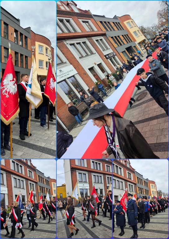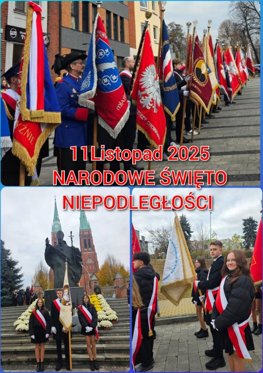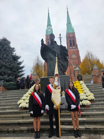 Uroczystości rozpoczęły się Mszą Świętą w intencji Ojczyzny w bazylice św. Antoniego, po której uczestnicy przemaszerowali pod pomnik Jana Pawła II i dalej na rybnicki rynek, gdzie odbyła się część oficjalna z udziałem przedstawicieli władz miasta, służb mundurowych, pocztów sztandarowych oraz mieszkańców Rybnika.Był to piękny, podniosły moment, w którym wspólnie mogliśmy oddać hołd bohaterom walczącym o wolność Polski i świętować niezależność naszej Ojczyzny.Dziękujemy wszystkim za godne reprezentowanie naszej szkoły w tym ważnym dniu!