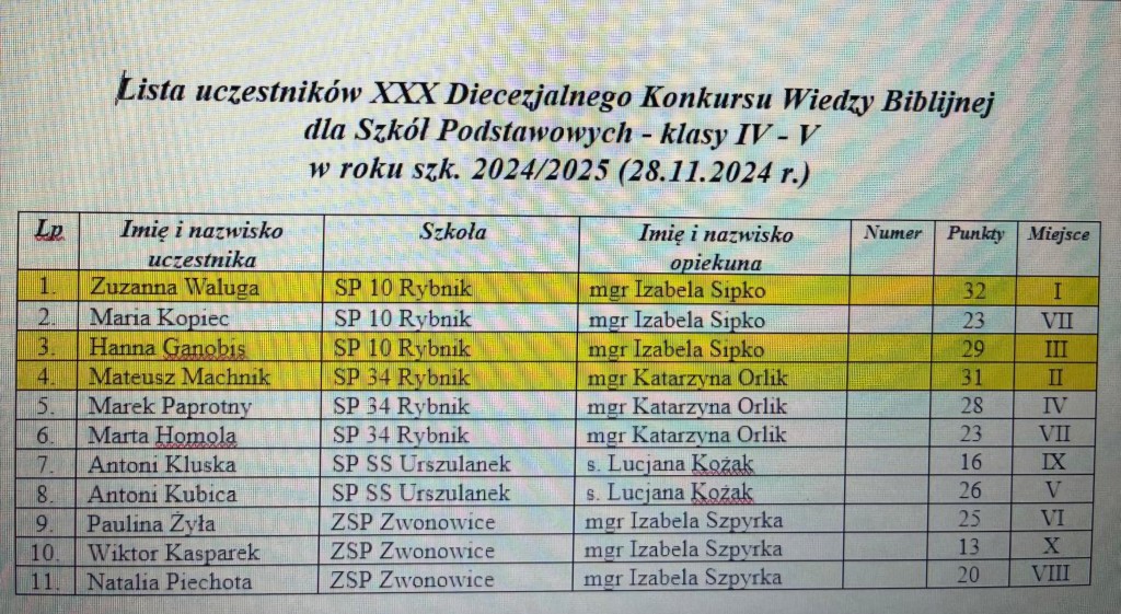 Do Katowic, na wielki finał , pojadą dwie uczennice-laureatki etapu rejonowego Konkursu Biblijnego.Gratulujemy: Zuzannie Waludze i Hannie Ganobis.